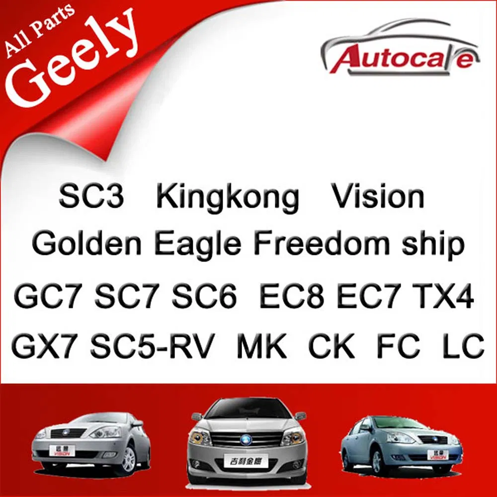 We are the exporter / wholesaler ofGeely all models: GC7, SC7,SC6, EC8, EC7,TX4, SC3, Kingkong,Vision, Golden Eagle, Freedom ship, GX7, SC5-RV, MK, CK, FC, LC, etc. For any enquiries, you can just send with part number, part name and parts quantity to us, we will quote you our best and precise prices. If you are not clear of part numbers, we can also quote with vehicle details.